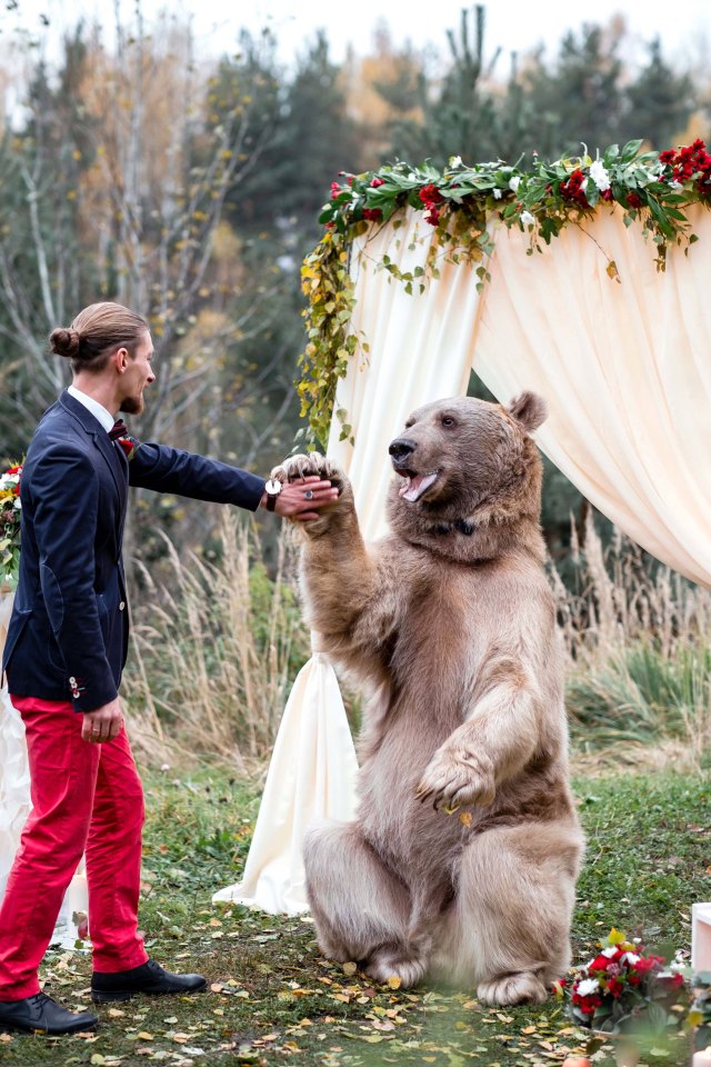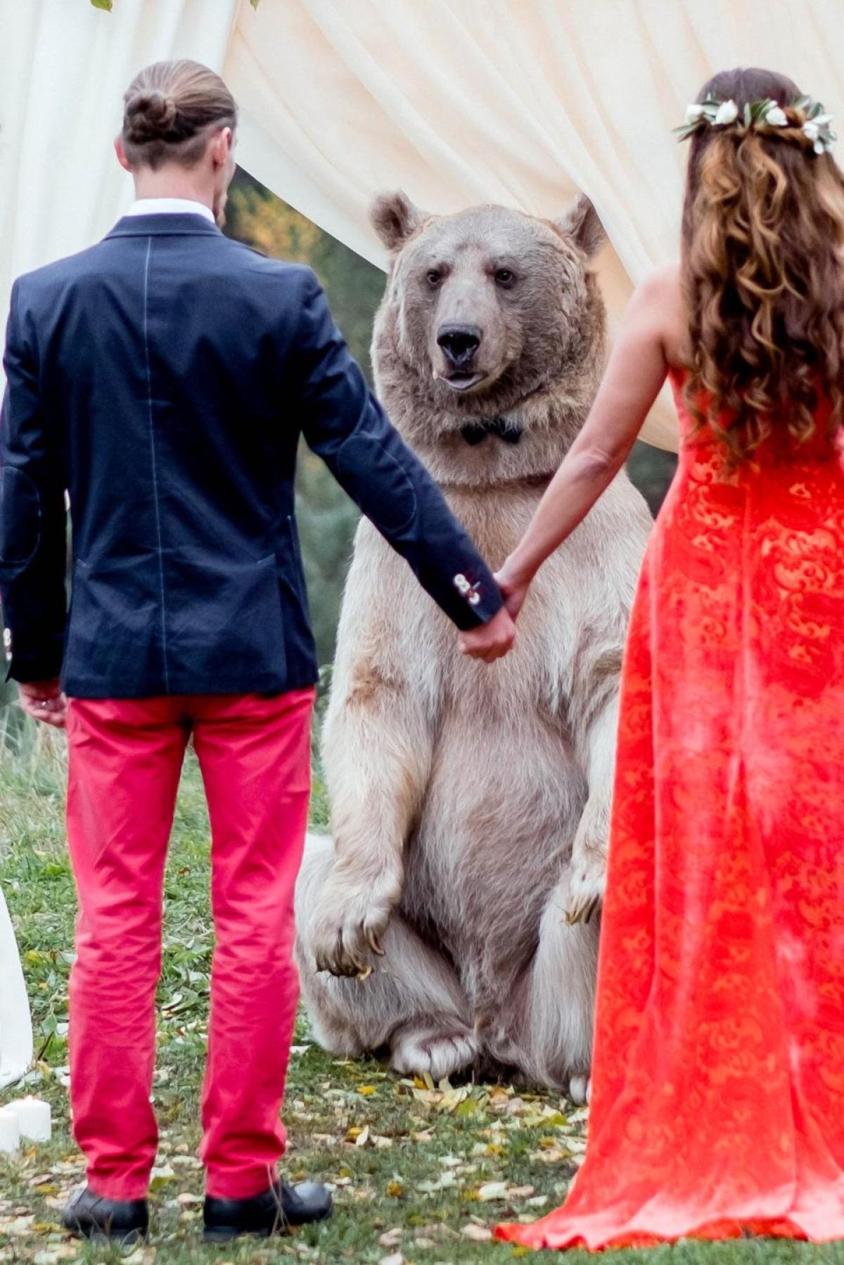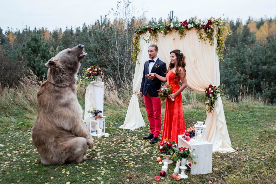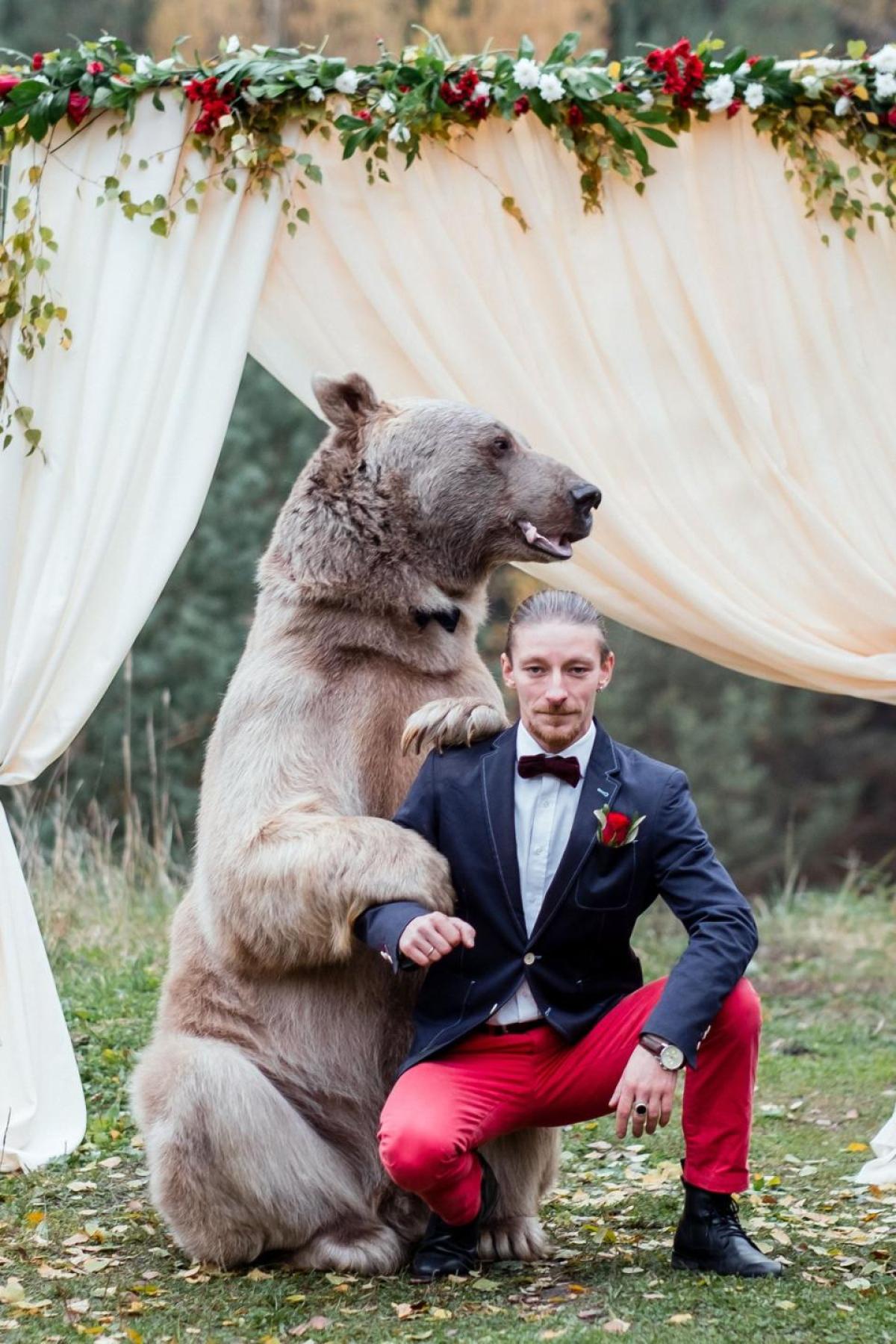 «Και οι δύο μας γνωρίζουμε ότι ο Stepan είναι μια καλόβολη αρκούδα, αλλά παραμένει ένα μεγάλο και απρόβλεπτο ζώο. Φοβόμασταν λίγο, αλλά χαιρόμαστε που πραγματοποιήσαμε το όνειρό μας. Ήταν μια φανταστική εμπειρία να κάνουμε αυτή τη φωτογράφιση με τον Στέπαν», ανέφερε ο γαμπρός.