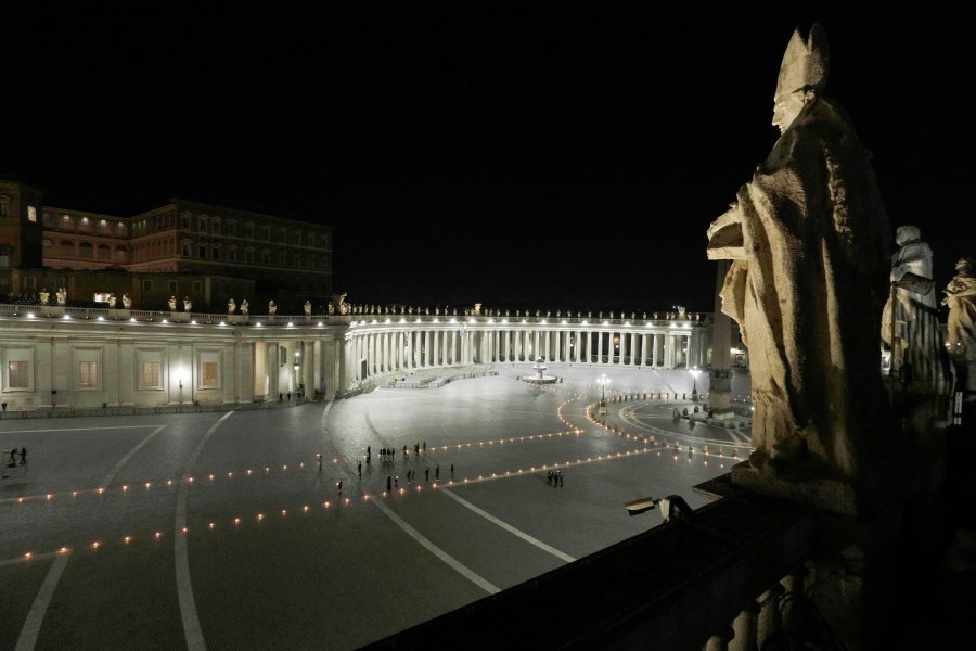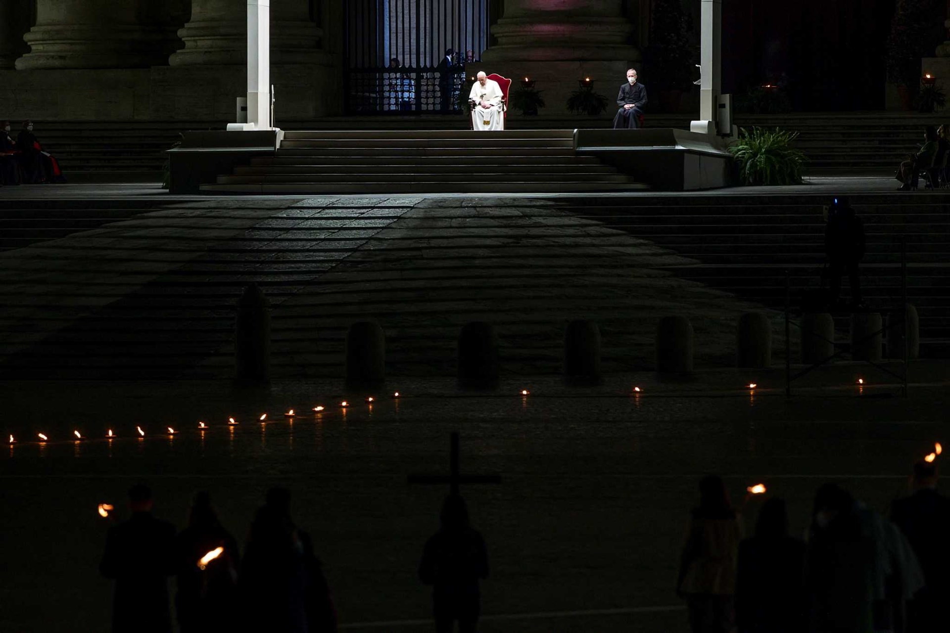 Ο πάπας Φραγκίσκος θέλησε να στείλει μήνυμα ελπίδας στη λειτουργία που τελέστηκε στο Βατικανό, παραμονή του Καθολικού Πάσχα. Η πλατεία του Αγίου Πέτρου ήταν εντελώς άδεια.