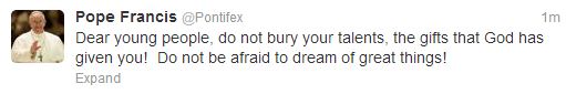 Ο Πάπας Φραγκίσκος Α’, βλέποντας όλα όσα συμβαίνουν στην Ευρώπη, που μαστίζεται από την οικονομική κρίση, στέλνει το δικό του μήνυμα στους νέους μέσω twitter.