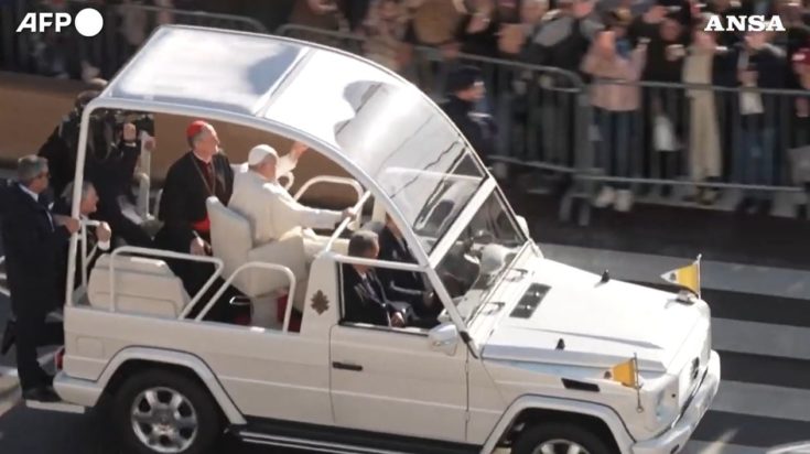 Κατασκευασμένο από τη Mercedes-Benz, το λευκό όχημα είναι το πρώτο πλήρως ηλεκτρικό παπικό όχημα και διαθέτει επίσης ειδική θέση για να στέκονται οι Ελβετοί φρουροί για να προστατεύουν τον ποντίφικα – ο οποίος γίνεται 88 ετών την Τρίτη.