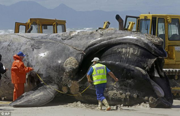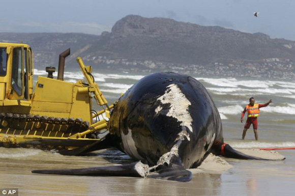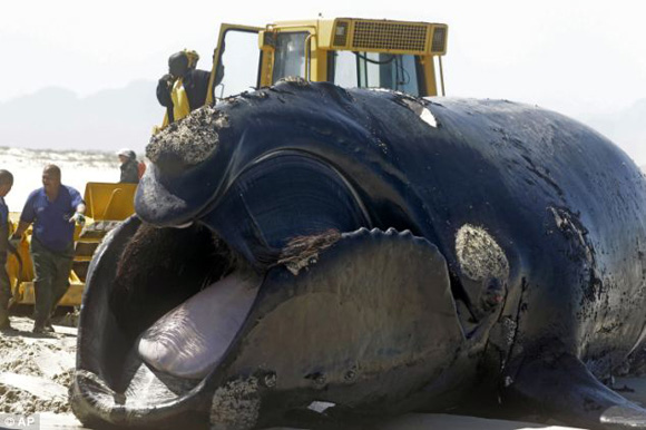 Φάλαινα μήκους 30 μέτρων ξεβράστηκε στην παραλία Muizenberg, κοντά στο Κέιπ Τάουν στη Νότιο Αφρική, μετά από επίθεση μεγάλων λευκών καρχαριών.Οι αρχές της Νοτίου Αφρικής έκλεισαν για προληπτικούς λόγους ένα μεγάλο τμήμα της ακτογραμμής, καθώς το κήτος προσέλκυε πολλούς καρχαρίες κοντά στην ακτή.Τα μέλη της Υπηρεσίας Διαχείρισης Κρίσεων κατάφεραν να βγάλουν τη γιγάντια φάλαινα έξω από το νερό, ώστε να την παραλάβει η μπουλντόζα και να τη μεταφέρει στη χωματερή.Δείγματα έχουν ήδη σταλεί για εργαστηριακές εξετάσεις, ώστε να προσδιοριστούν τα αίτια θανάτου της, καθώς δεν είναι εύκολο να εκτιμηθεί, αν η φάλαινα ήταν ζωντανή, όταν δέχθηκε επίθεση από τους καρχαρίες ή αν είχε πεθάνει εξαιτίας κάποιας αρρώστιας.