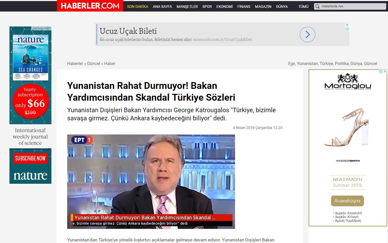 «Προκλητικός λόγος από Έλληνα πολιτικό», είναι ο τίτλος του σάιτ «cayyoluburada.com» φιλοξενώντας τις δηλώσεις του κ. Κατρούγκαλου. «Η Ελλάδα δεν κάθεται ήσυχα», αναφέρει με τη σειρά του η ιστοσελίδα «haberler.com» κάνοντας λόγο για «σκανδαλώδη λόγο από τον αναπληρωτή υπουργό της ελληνικής κυβέρνησης».