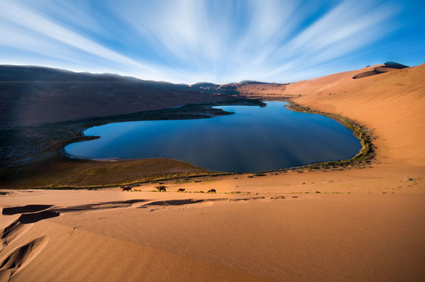 Αυτές οι μυστηριώδεις λίμνες πιστεύεται ότι τροφοδοτούνται από υπόγειες πηγές υδάτων που ρέουν κάτω από την άμμο, οι οποίες δημιουργούνται από τα χιόνια που λιώνουν από τα βουνά που περιβάλλουν την έρημο εκατοντάδες χιλιόμετρα μακριά.