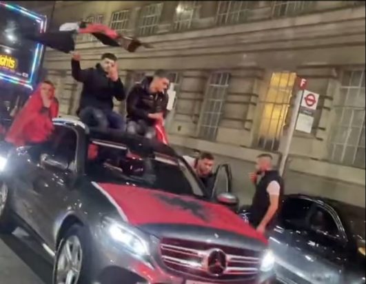 Σε βίντεο που κάνουν τον γύρο των social media, φαίνονται εκατοντάδες Αλβανοί να έχουν ξεχυθεί στους δρόμους φτάνοντας στο κέντρο του Λονδίνου με ακριβά αυτοκίνητα και κόκκινες σημαίες με τον μαύρο αετό να ανεμίζουν.