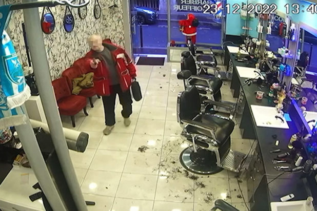 Στο βίντεο φαίνεται ο 69χρονος ο οποίος φορώντας ένα κόκκινο μπουφάν μπαίνει σε ένα κουρείο, κοντά στο πολιτιστικό κέντρο όπου άνοιξε πυρ και με το όπλο στο χέρι απειλεί όσους βρίσκονται σε αυτό.