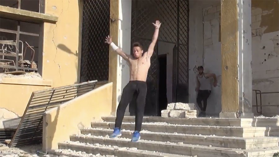 Πολλοί κάτοικοι στο Χαλέπι της Συρίας προσπαθούν να συνεχίσουν τις ζωές τους. Τα γκρεμισμένα κτίρια έχουν γίνει το ιδανικό σκηνικό για μια ομάδα παρκούρ.