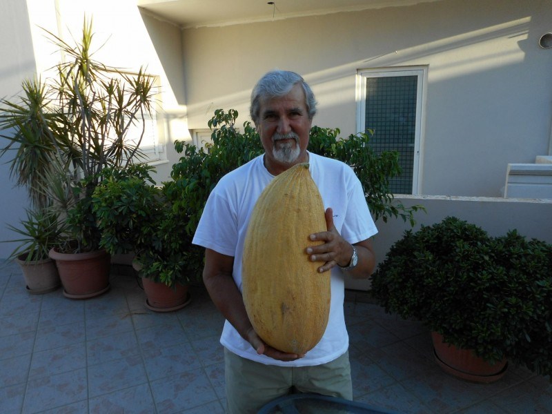 Αντίκρισε ένα πεπόνι – γίγας, μήκους 55 εκατοστών και βάρους 8 κιλών και 600 γραμμαρίων.