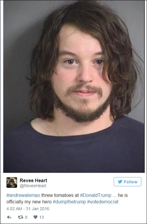 Ο νεαρός που πέταξε ντομάτες στον Ντόναλντ Τραμπ κατά τη διάρκεια της προεκλογικής του ομιλίας στο Πανεπιστήμιο της Αϊόβα ανακηρύχτηκε «ήρωας» από μερικούς στα social media.
