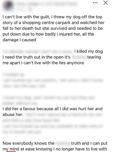 Η γυναίκα μάλιστα ομολόγησε τη σκληρή πράξη στο Facebook, λέγοντας ότι δεν μπορούσε να «ζήσει με τις ενοχές», αλλά αργότερα διέγραψε την ανάρτηση και είπε στην αστυνομία ότι ο λογαριασμός της είχε χακαριστεί.