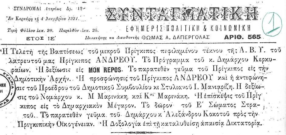 Λίγο μετά τη γέννησή του, ο παππούς του από τη μεριά της μητέρας του, Λουδοβίκος του Μπάττενμπεργκ, μετέπειτα γνωστός ως Λούις Μαουντμπάττεν, Μαρκήσιος του Μίλφορντ Χέιβεν, πέθανε στο Λονδίνο. Ο Λουδοβίκος ήταν πολιτογραφημένος ως Βρετανός υπήκοος, ο οποίος είχε αρνηθεί τους γερμανικούς τίτλους του και είχε υιοθετήσει το επώνυμο Μαουντμπάττεν, κατά τη διάρκεια του Πρώτου Παγκόσμιου Πολέμου. Η πριγκίπισσα Αλίκη και ο Φίλιππος πήγαν στο Λονδίνο για την κηδεία, όμως ο πατέρας του πρίγκιπας Ανδρέας δεν παρέστη καθώς βρισκόταν στο Μικρασιατικό μέτωπο.