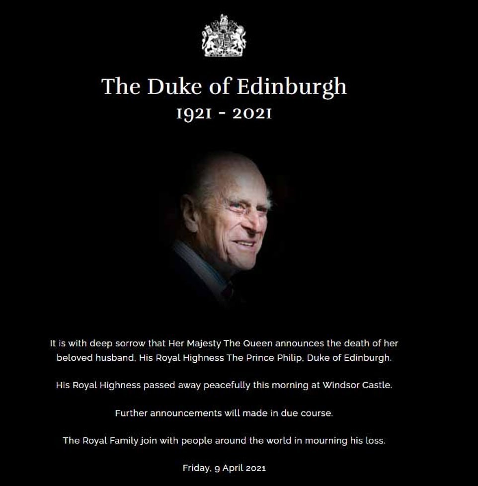 Ο θάνατός του βυθίζει το έθνος και τη Βασιλική Οικογένεια σε πένθος. Η βασίλισσα αναμένεται τώρα να εισέλθει σε περίοδο πένθους οκτώ ημερών. Δεν θα εκτελέσει τα καθήκοντα της, ακόμη και ιδιωτικά, ενώ και οι υποθέσεις του κράτους θα σταματήσουν επίσης. Το επίσημο βασιλικό πένθος αναμένεται να συνεχιστεί για 30 ημέρες. Αξιωματούχοι στο Ανάκτορο του Μπάκιγχαμ προετοιμάζονται τώρα για μια βασιλική τελετουργική κηδεία στο Κάστρο του Ουίνδσορ στο Μπερκσάιρ, σύμφωνα με τις επιθυμίες του Φίλιππου, με αναμενόμενη στρατιωτική πομπή στο Λονδίνο.