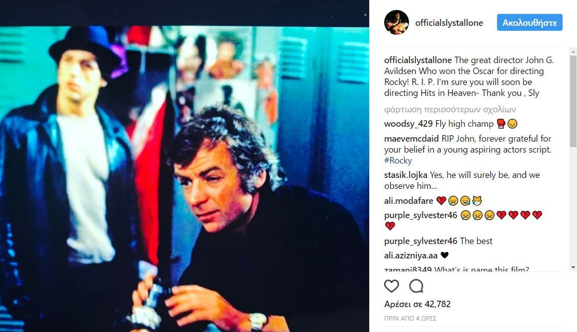 Ο Σιλβέστερ Σταλόνε απέτισε φόρο τιμής στον σκηνοθέτη που τον έκανε διάσημο αναρτώντας στο λογαριασμό του το μήνυμα: “Ο σπουδαίος σκηνοθέτης Τζον Τζ. Άβιλντσεν που κέρδισε το Όσκαρ για τη σκηνοθεσία του Ρόκι! Αναπαύσου εν ειρήνη. Είμαι βέβαιος ότι σύντομα θα σκηνοθετήσεις επιτυχίες στον παράδεισο. Σ΄ευχαριστώ, Sly”.