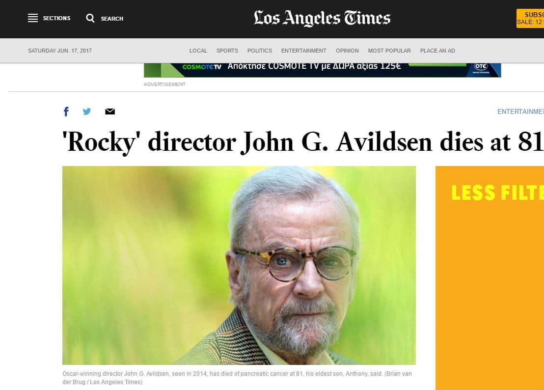 Ο Σιλβέστερ Σταλόνε απέτισε φόρο τιμής στον σκηνοθέτη που τον έκανε διάσημο αναρτώντας στο λογαριασμό του το μήνυμα: “Ο σπουδαίος σκηνοθέτης Τζον Τζ. Άβιλντσεν που κέρδισε το Όσκαρ για τη σκηνοθεσία του Ρόκι! Αναπαύσου εν ειρήνη. Είμαι βέβαιος ότι σύντομα θα σκηνοθετήσεις επιτυχίες στον παράδεισο. Σ΄ευχαριστώ, Sly”.