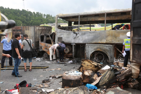 Σύμφωνα με το επίσημο πρακτορείο ειδήσεων Xinhua, το δυστύχημα, που σημειώθηκε στην επαρχία Χουνάν, συνέβη τις πρώτες πρωινές ώρες όταν το βαν έπεσε στο πίσω μέρος του λεωφορείου προκαλώντας πυρκαγιά και μία έκρηξη,
