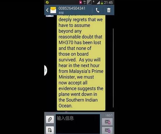 Με ένα μήνυμα η Malaysia Airlines ανακοίνωσε στους συγγενείς των επιβατών του μοιραίου Boeing ότι δεν υπάρχουν επιζώντες και ότι το αεροσκάφος κατέπεσε στο νότιο Ινδικό Ωκεανό.