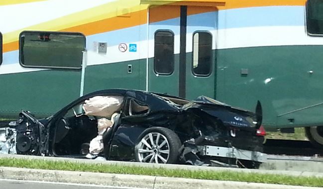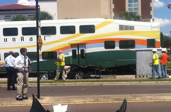 Από θαύμα σώθηκε μία γυναίκα οδηγός στη Florida των ΗΠΑ, όταν το αμάξι της κόλλησε στις ράγες του τρένου. Η γυναίκα την τελευταία στιγμή κατάφερε να αφήσει το ολοκαίνουργιο όχημά της, πριν το τρένο περάσει πάνω από το αμάξι και το μετατρέψει σε συντρίμμια. Σύμφωνα με την οδηγό κόλλησε το κιβώτιο ταχυτήτων με αποτέλεσμα να μην μπορεί ούτε να οδηγήσει μπροστά, ούτε να κάνει όπισθεν.