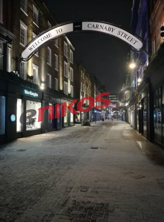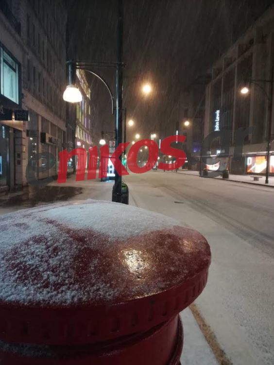 Η χιονόπτωση έχει δημιουργήσει ένα εντυπωσιακό σκηνικό στους κεντρικούς δρόμους του Λονδίνου.