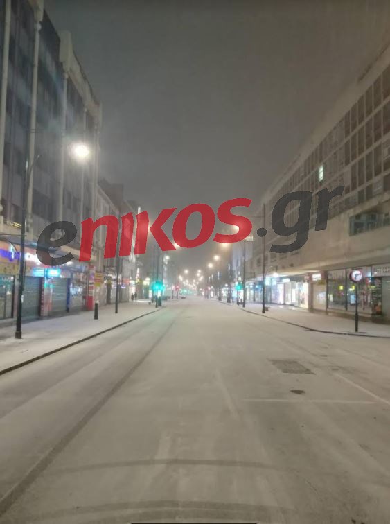 Όπως φαίνεται στις φωτογραφίες που έστειλε αναγνώστης του enikos.gr, οι δρόμοι έχουν “ντυθεί” στα λευκά.