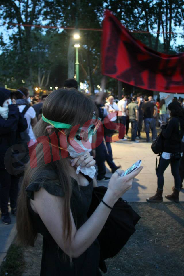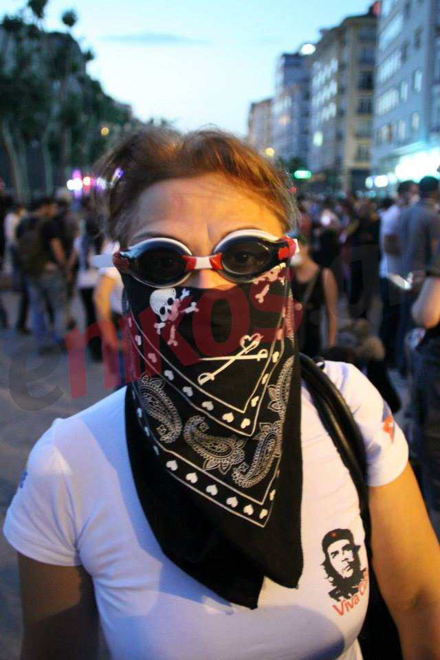Χιλιάδες κόσμου κατακλύζουν την πλατεία Ταξίμ εδώ και μερικές ημέρες. Πολλοί πολίτες φορούν αντισφυξιογόνες μάσκες υπό την απειλή των χημικών, ενώ σε κάθε σημείο υπάρχουν αφίσες με συνθήματα. Η πιο χαρακτηριστική είναι αυτή που χαρακτηρίζει τον Ερντογάν δικτάτορα…