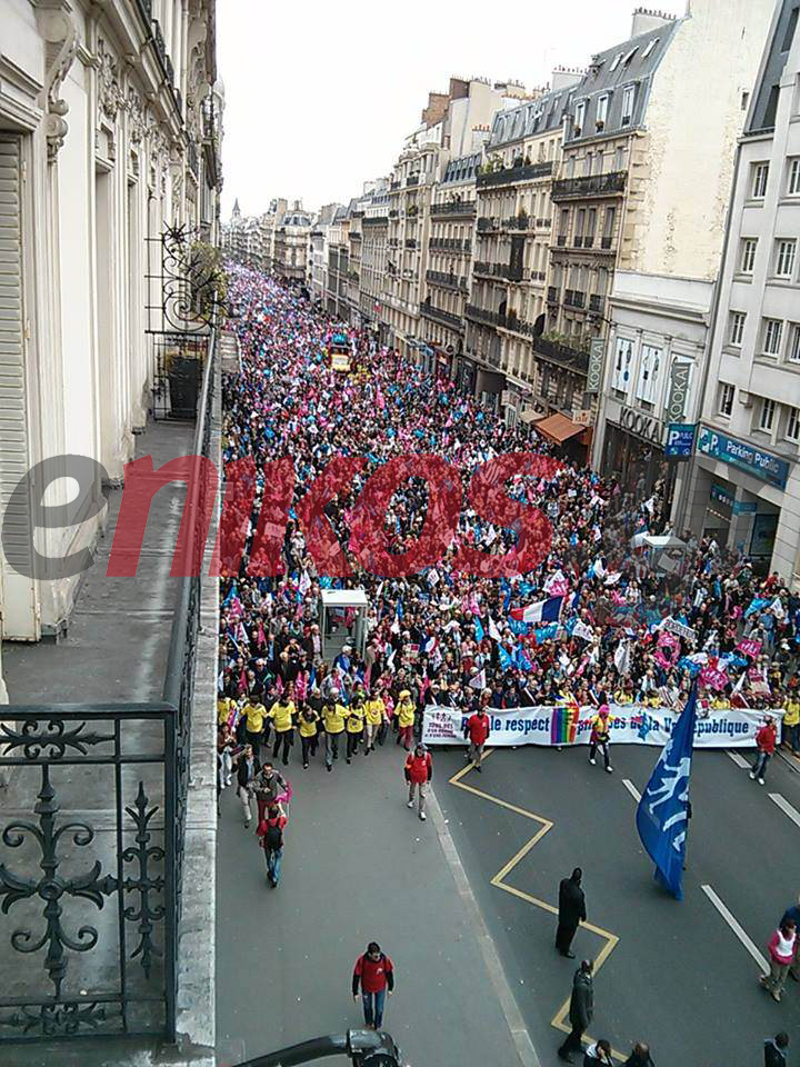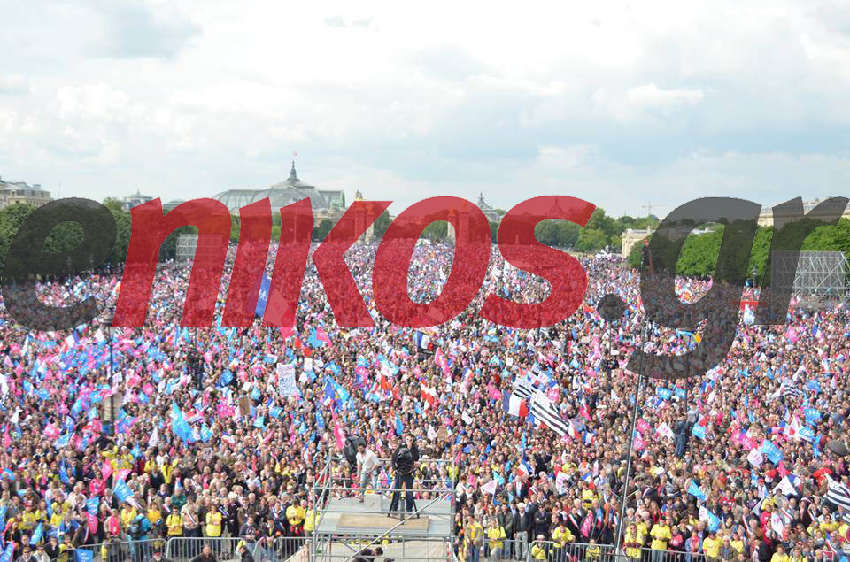 Οι διοργανωτές της διαδήλωσης κατά των γάμων των ομοφυλοφίλων που πραγματοποιήθηκε σήμερα στο Παρίσι εκτίμησαν πως η συμμετοχή “ξεπέρασε το ένα εκατομμύριο”.