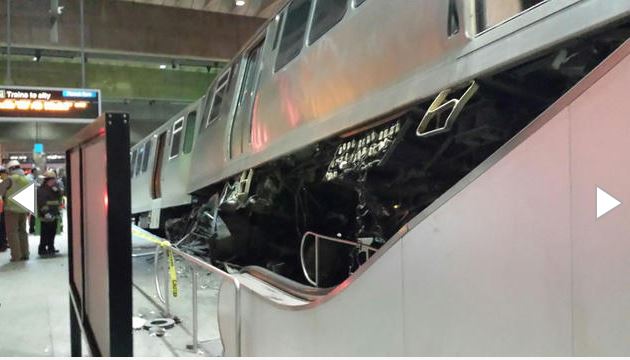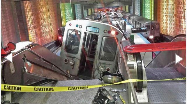 Το τρένο συνέχισε την τρελή πορεία του μέχρι το τέλος της πλατφόρμας και χτύπησε τις κυλιόμενες σκάλες που οδηγούν στους τερματικούς σταθμούς του αεροδρομίου.