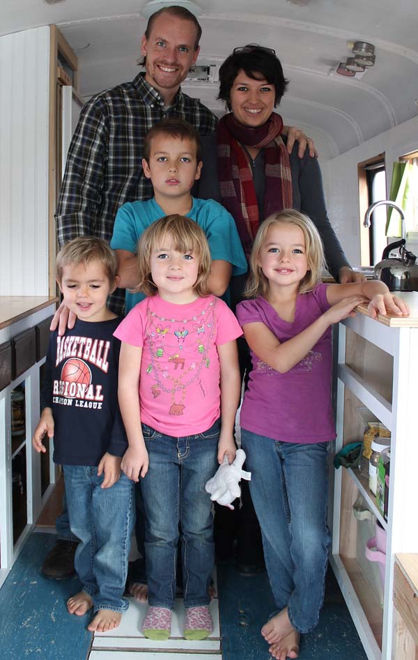 Η αρχική εντύπωση είναι ότι έξι άτομα δεν είναι δυνατόν να ζουν ευτυχισμένα σε ένα… σχολικό λεωφορείο. Κι όμως. Οι ευφάνταστοι γονείς προφανώς δεν είναι ευκατάστατοι αλλά είναι πολυμήχανοι.