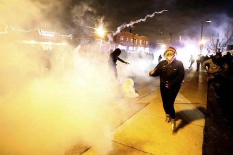Δώδεκα κτίρια στο Φέργκιουσον πυρπολήθηκαν στη διάρκεια της νύχτας και η αστυνομία εκτόξευσε δακρυγόνα και βομβίδες κρότου λάμψης εναντίον των διαδηλωτών, δήλωσε ο Μπέλμαρ. Τα σχολεία στο Φέργκιουσον και τις γύρω μικρότερες πόλεις ανακοίνωσαν πως δεν θα ανοίξουν σήμερα. Οι διαδηλωτές σχεδιάζουν να διαδηλώσουν έξω από την αίθουσα του δικαστηρίου στο Κλέιτον του Μιζούρι όπου συνεδρίασε το σώμα των ενόρκων.