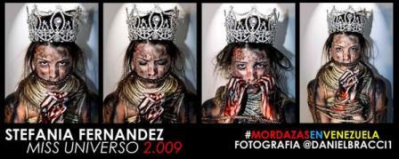 Με μία ανατρεπτική και σοκαριστική φωτογράφηση, στο πλαίσιο της εκστρατείας Sin Mordaza (Χωρίς φίμωση) η Stefania Fernandez, Μις Βενεζουέλα 2008 και Μις Κόσμος 2009 θέλησε να διαμαρτυρηθεί για όσα συμβαίνουν στη χώρα της.