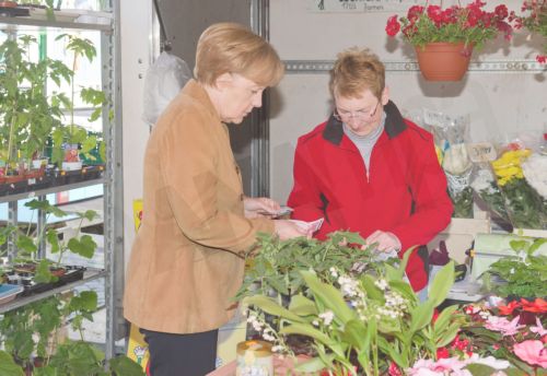 Όπως φαίνεται και στις φωτογραφίες η Γερμανίδα Καγκελάριος συνομίλησε με πολίτες ενώ δεν δίστασε να αγοράσει φυτά και σπόρους ντομάτας.