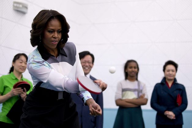 ΦΩΤΟ-Η Μισέλ Ομπάμα παίζει πινγκ πονγκ