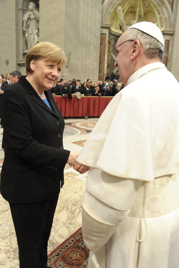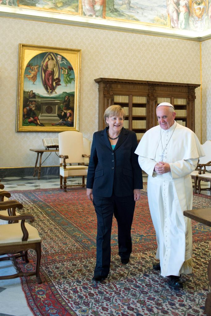 Δείτε στιγμιότυπα από την 45λεπτη συνάντηση της Γερμανίδας καγκελάριου, Άνγκελας Μέρκελ, με τον Πάπα Φραγκίσκο τον Α’, κατά τη διάρκεια σύντομης επίσκεψής της στην Ιταλία.