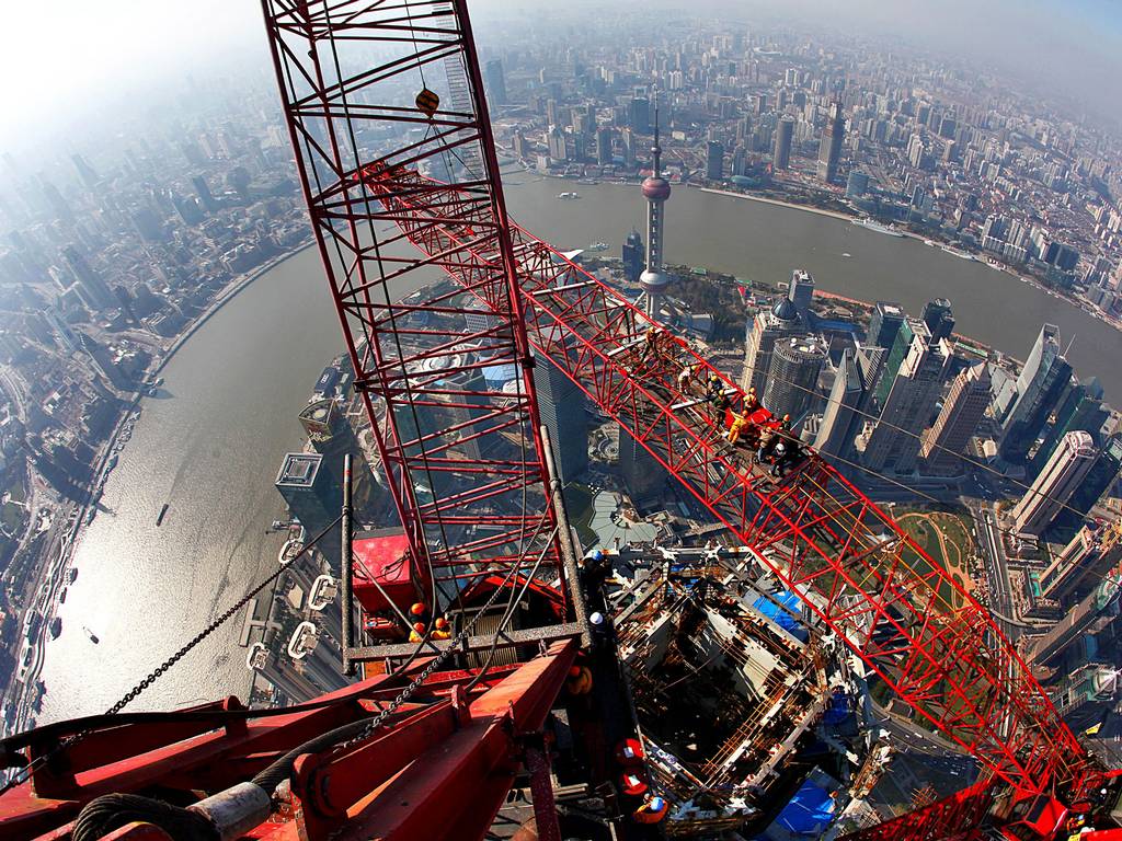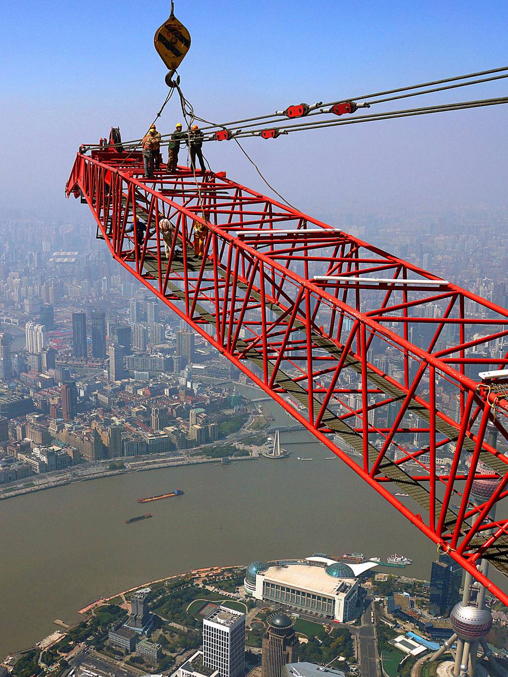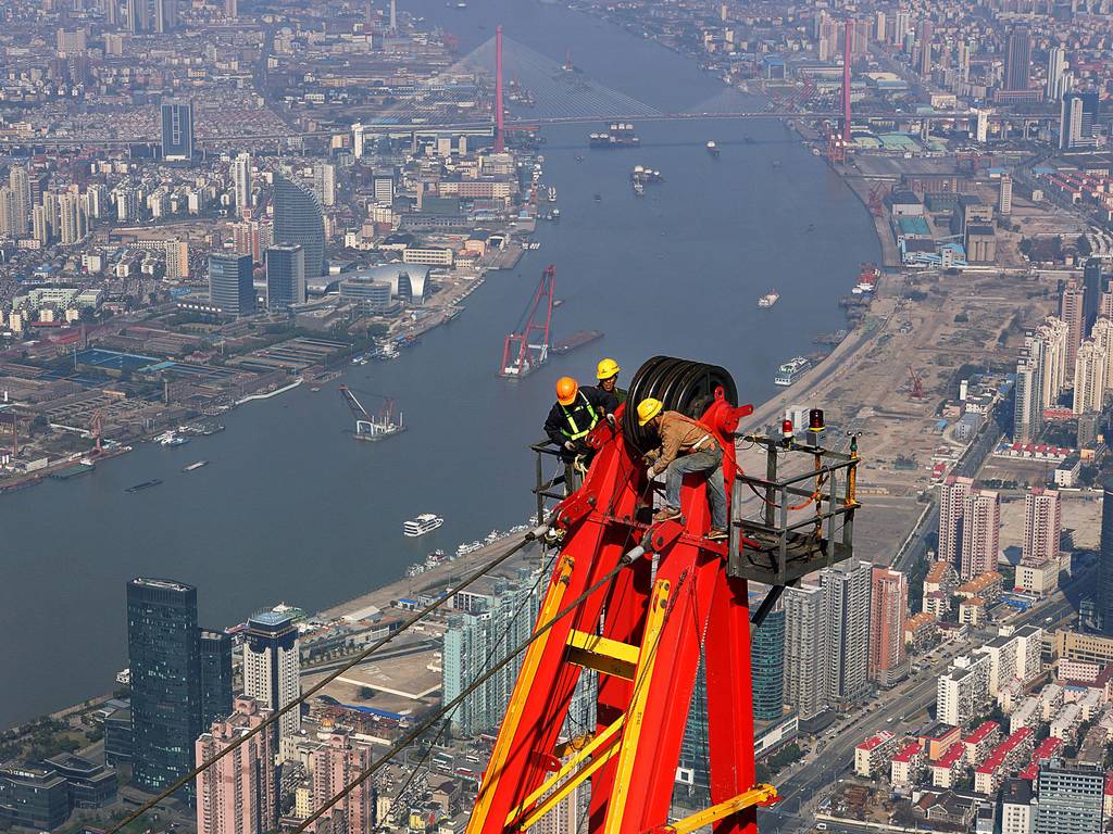 Έξι χρόνια μετά την έναρξη των εργασιών για τη δημιουργία του ψηλότερου κτιρίου της Κίνας, δημοσιεύονται φωτογραφίες που δείχνουν τους εργάτες να ακροβατούν 632 μέτρα πάνω από τη γη και προκαλούν ίλιγγο. Οι εργάτες μετά το πέρας των εργασιών, αποσυναρμολογούν τους γερανούς που βοήθησαν στην κατασκευή του.