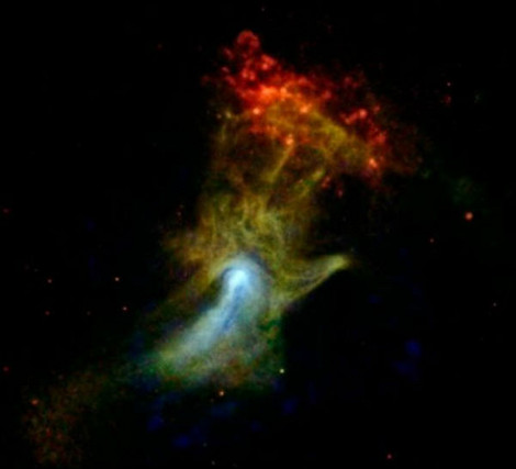 Απίστευτες φωτογραφίες που μοιάζουν ν’ απαθανατίζουν ένα φωτεινό χέρι κάνουν το γύρο του διαδικτύου. Προέρχονται από το διαστημικό τηλεσκόπιο Nustar και πρόκειται για ένα εντυπωσιακό κοσμικό φαινόμενο που κατέγραψαν οι επιστήμονες. Το νεφέλωμα είναι πιθανόν να δημιουργήθηκε από την αυτοκαταστροφή ενός άστρου και βρίσκεται 17 χιλιάδες έτη φωτός μακριά από τη Γη στον αστερισμό του Διαβήτη.