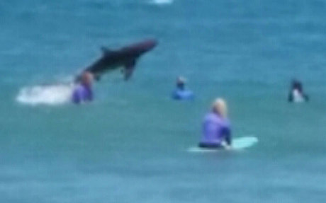 ΦΩΤΟ-Καρχαρίας «πετάει» και τρομοκρατεί γυναίκες-σέρφερ