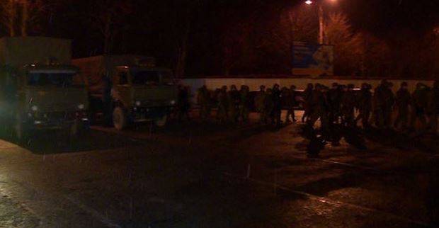 Σύμφωνα με το πρακτορείο ειδήσεων Interfax, 50 περίπου ένοπλοι άνδρες, ο οποίοι φορούσαν ίδιες στολές και είχαν αντίστοιχο εξοπλισμό με αυτον που έφεραν οι Ρώσοι εθνικιστές που κατέλαβαν την Πέμπτη το Κοινοβούλιο της Κριμαίας, υψώνοντας μάλιστα και ρωσική σημαία, προσέγγισαν το αεροδρόμιο της Συμφερόπολης με οχήματα KamAZ.