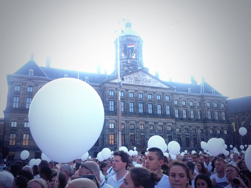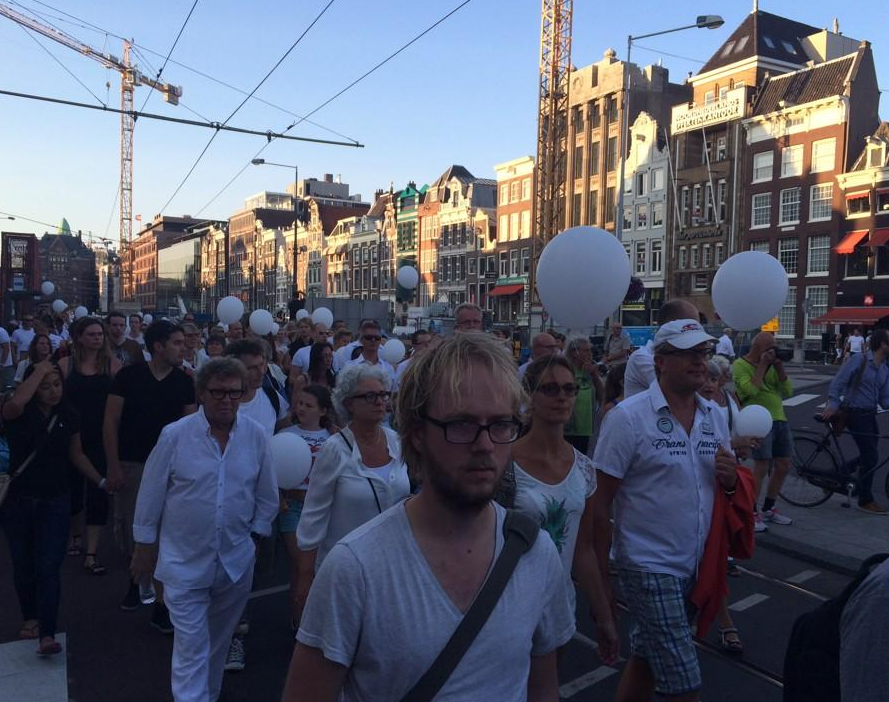 Οι συμμετέχοντες συγκεντρώθηκαν στην πλατεία Νταμ και περίπου στις 20:15 (τοπική ώρα, 21:15 ώρα Ελλάδας) πραγματοποίησαν πορεία μερικών χιλιομέτρων για να καταλήξουν μία ώρα αργότερα στη ίδια κεντρική πλατεία του Άμστερνταμ, όπου άφησαν να πετάξουν στον ουρανό πολλές εκατοντάδες λευκά μπαλόνια.