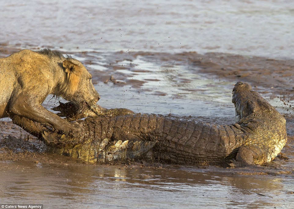 Ο κροκόδειλος προσπάθησε να παρασύρει το λιοντάρι πιο βαθιά, αλλά τελικά, επειδή στη μάχη έσπευσε και δεύτερο λιοντάρι, ο κροκόδειλος αποσύρθηκε από τον αγώνα.