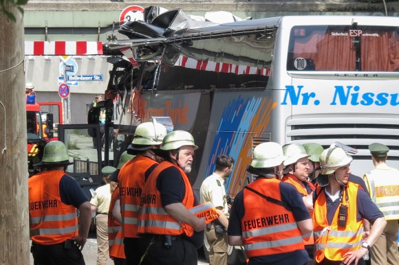 Σε γέφυρα προσέκρουσε διώροφο λεωφορείο που μετέφερε δεκάδες Δανούς μαθητές, στο Μόναχο της Γερμανίας.
