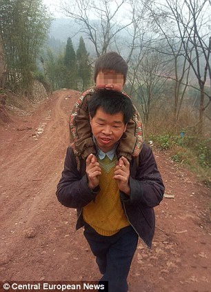 Ο 40χρονος Γιου Σουκάνγκ διανύει καθημερινά περισσότερα από 15 χιλιόμετρα έχοντας στην πλάτη του τον δωδεκάχρονο γιο του Σιάο που δεν μπορεί να περπατήσει. Η οικογένειά τους ζει στη νότια Κίνα, στους λόφους της πόλης Γιμπίν, στην περιφέρεια Σιτσουάν.