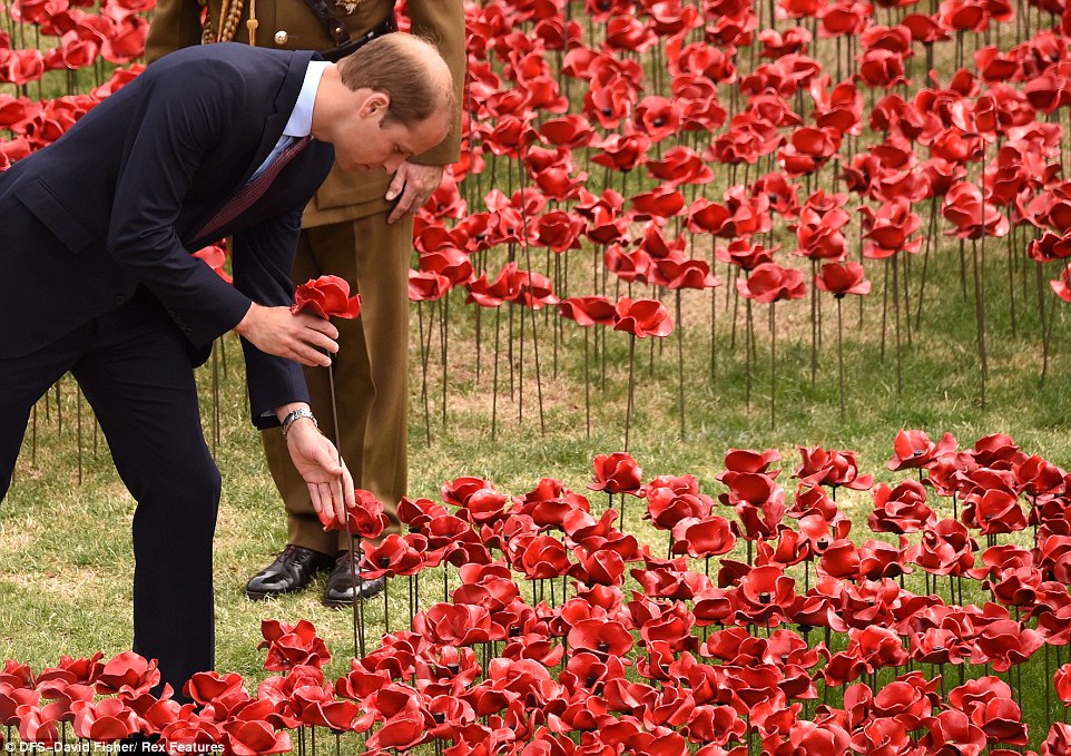 Ο Ουίλιαμ, η Κέιτ αλλά και ο πρίγκιπας Χάρι, επισκέφθηκαν τον πύργο του Λονδίνου, στον οποίο βρίσκονται 888.246 κεραμικές παπαρούνες, ως φόρο τιμής για τους νεκρούς του Α΄ Παγκοσμίου πολέμου. Όπως φαίνεται και στις φωτογραφίες, το πριγκιπικό ζεύγος περπάτησε στην κατακόκκινη «θάλασσα» που έχει σχηματιστεί από τις παπαρούνες ενώ, εμφανώς συγκινημένοι φύτεψαν και αυτοί παπαρούνες.