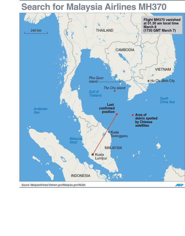 Η φωτογραφία δείχνει την ευρύτερη περιοχή που εντόπισαν οι δορυφόροι της Κίνας και δημοσιεύτηκε από το Γαλλικό Πρακτορείο Ειδήσεων.