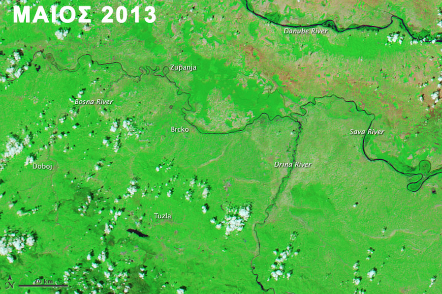 Οι τεράστιες διαστάσεις των καταστροφικών πλημμυρών στη Βοσνία και τη Σερβία είναι ορατές ακόμα και από το διάστημα.