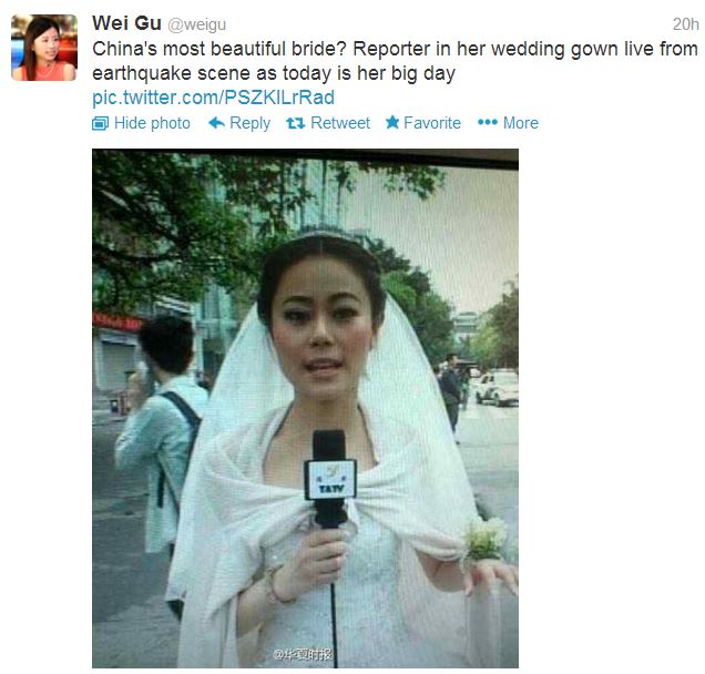 H δημοσιογράφος Chen Ying , εργάζεται για το τοπικό κανάλι “Ya’an TV” και η χρήστης του twitter Wei Gu, ανέβασε τη φωτογραφία της στο twitter.
