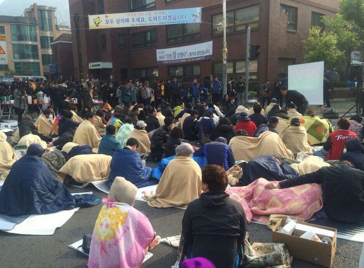 «Ακούστε μας πρόεδρε Παρκ. Απλά δώστε μας 10 δευτερόλεπτα», φώναζε το μέλος μιας οικογένειας μέσω μεγάφωνου. «Γιατί μπλοκάρετε το δρόμο», είπε ένας άλλος γονιός. «Ακούστε τις φωνές μας», ήταν τα λόγια ενός άλλου γονέα.
