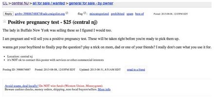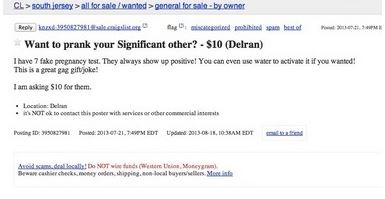 Εδώ και καιρό στις ΗΠΑ υπάρχει μια νέα συνήθεια. Πουλάνε θετικά τεστ εγκυμοσύνης στο διαδίκτυο. Μάλιστα οι γυναίκες κάνουν ουρά για να τα αγοράσουν για ποσά εως και 25 δολάρια το ένα.