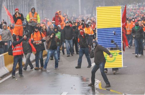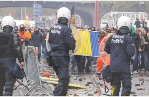 ΦΩΤΟ-Σοβαρά επεισόδια με τραυματίες στις Βρυξέλλες