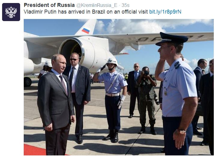 Στην Βραζιλία έφθασε πριν από λίγο ο Ρώσος Πρόεδρος, Βλαντιμίρ Πούτιν, όπου θα παρακολουθήσει τον τελικό του Παγκοσμίου Κυπέλλου.