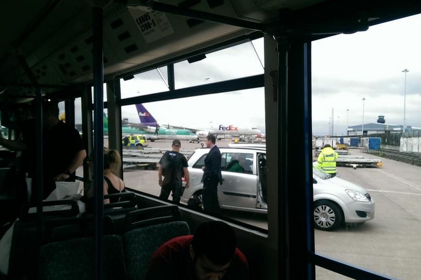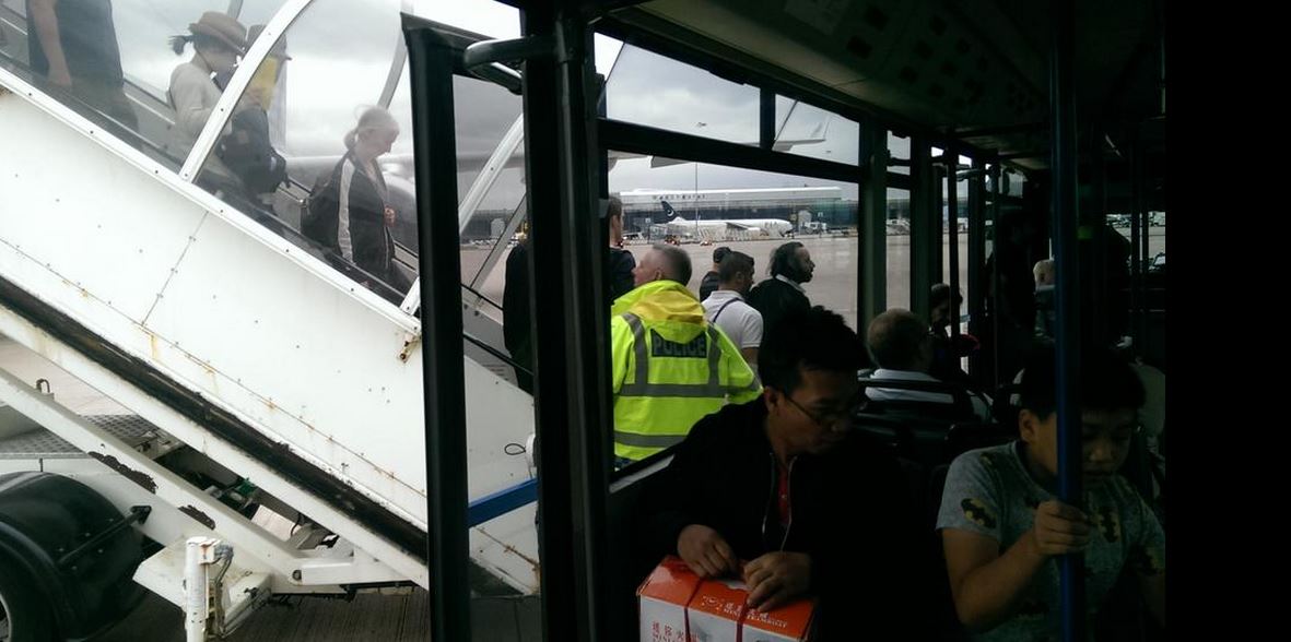 Στο αεροδρόμιο του Μάντσεστερ υπήρχε μεγάλη κινητοποίηση τόσο της Πυροσβεστικής όσο και της Αστυνομίας όπως φαίνεται και στις φωτογραφίες που ένας επιβάτης της πτήσης QR23 ανέβασε στο twitter.
