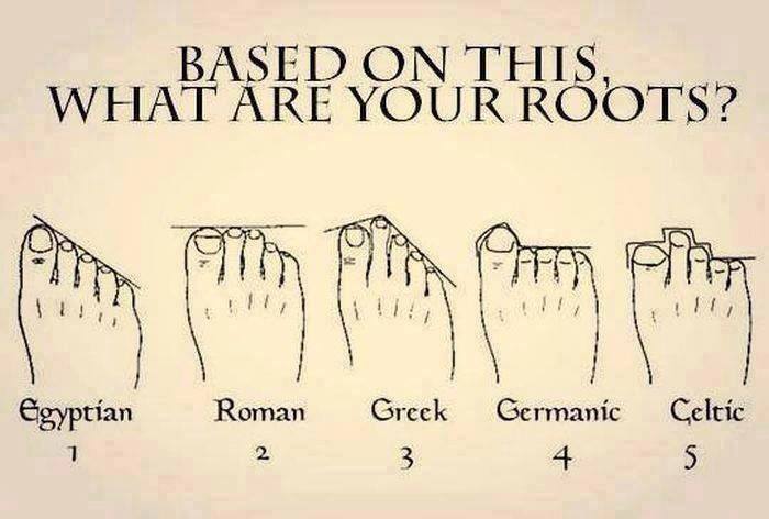 Κι όμως σύμφωνα με την Jane Sheehan τα δάχτυλα των ποδιών μας μαρτυρούν την καταγωγή μας.