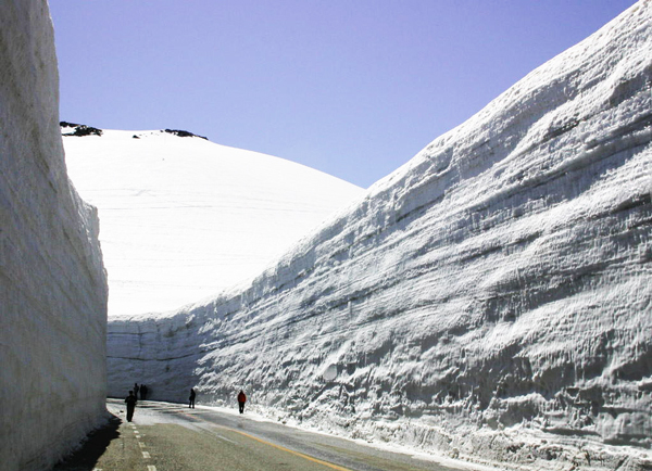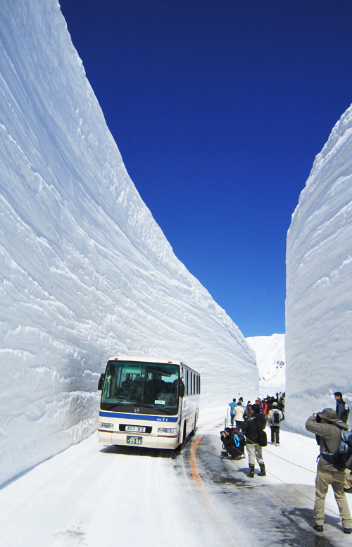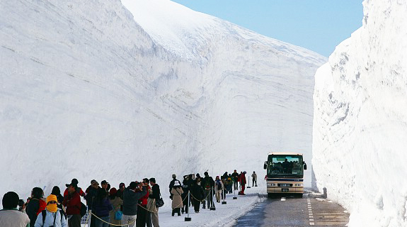 Τα «τείχη του χιονιού», αποτελούν μοναδικό αξιοθέατο και βρίσκονται σε μία εντυπωσιακή διαδρομή, μήκους 90 χιλιομέτρων, που διασχίζει τις βόρειες Ιαπωνικές Άλπεις.